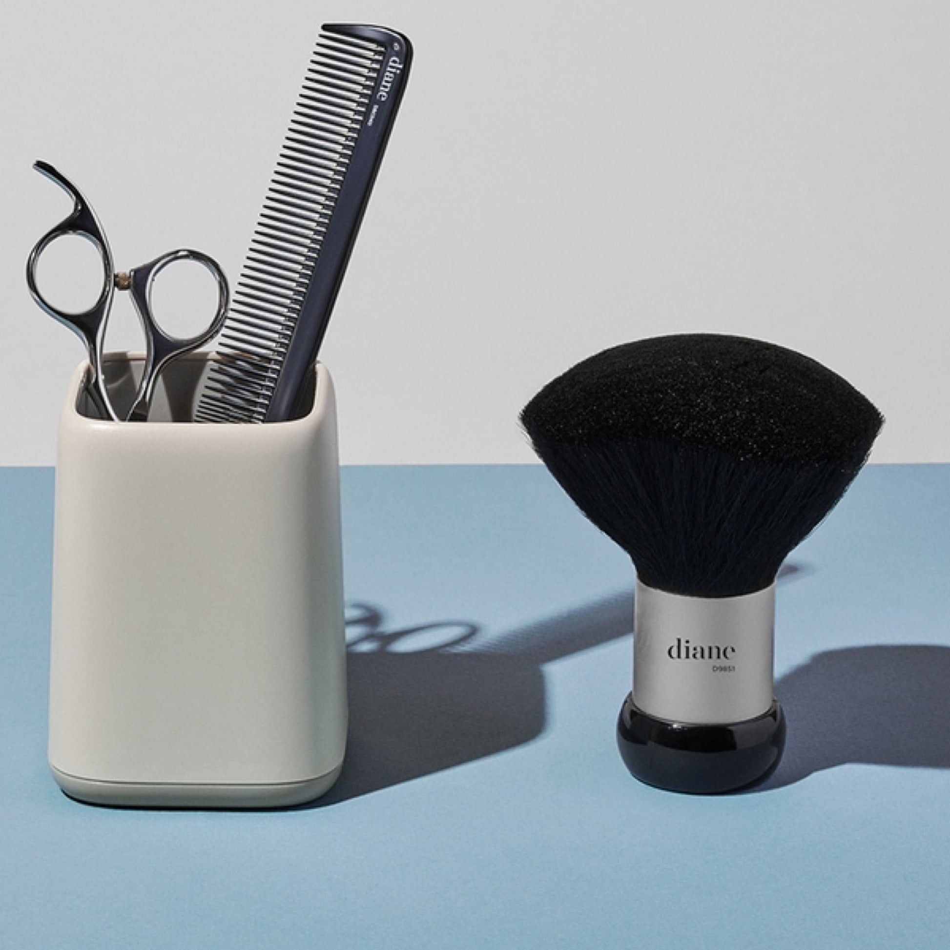 - Soft nylon bristles that help gently brush hair from neckline and ears