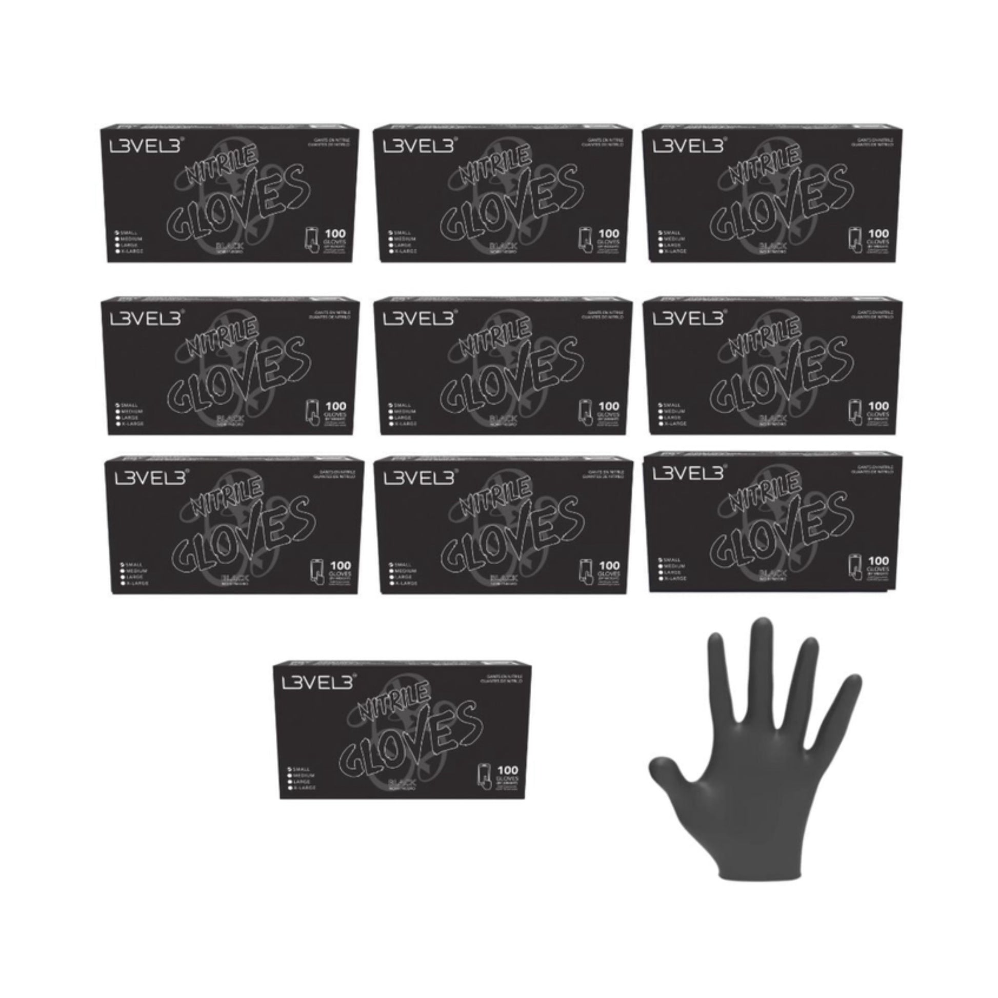 L3VEL3 Black Professional Nitrile Gloves – 10 Packages for 1000 CT of Gloves